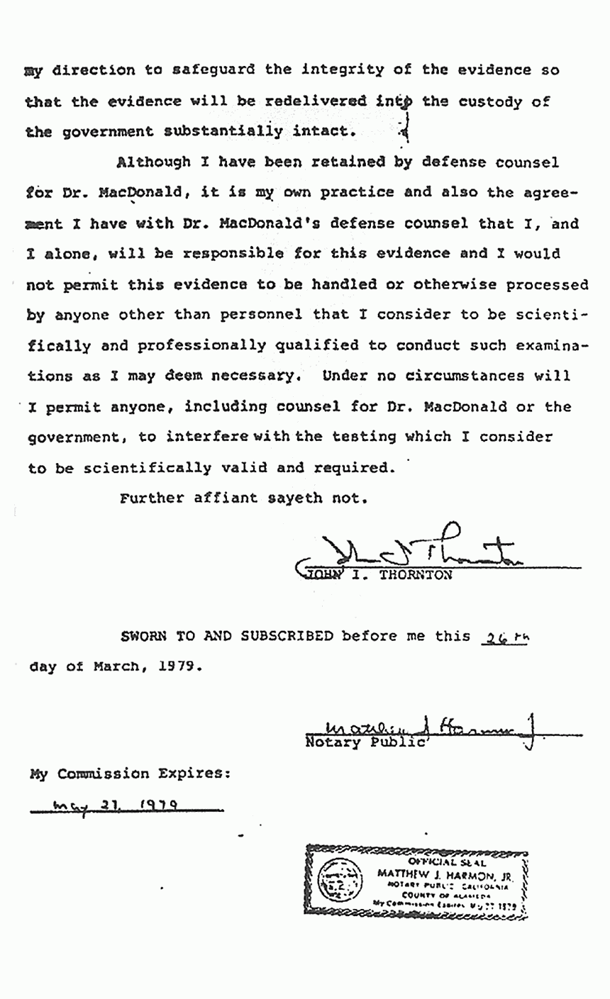 Affidavit of Dr. John Thornton in Support of Defendant's Motion to Compel production of Tangible Objects