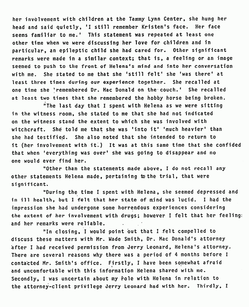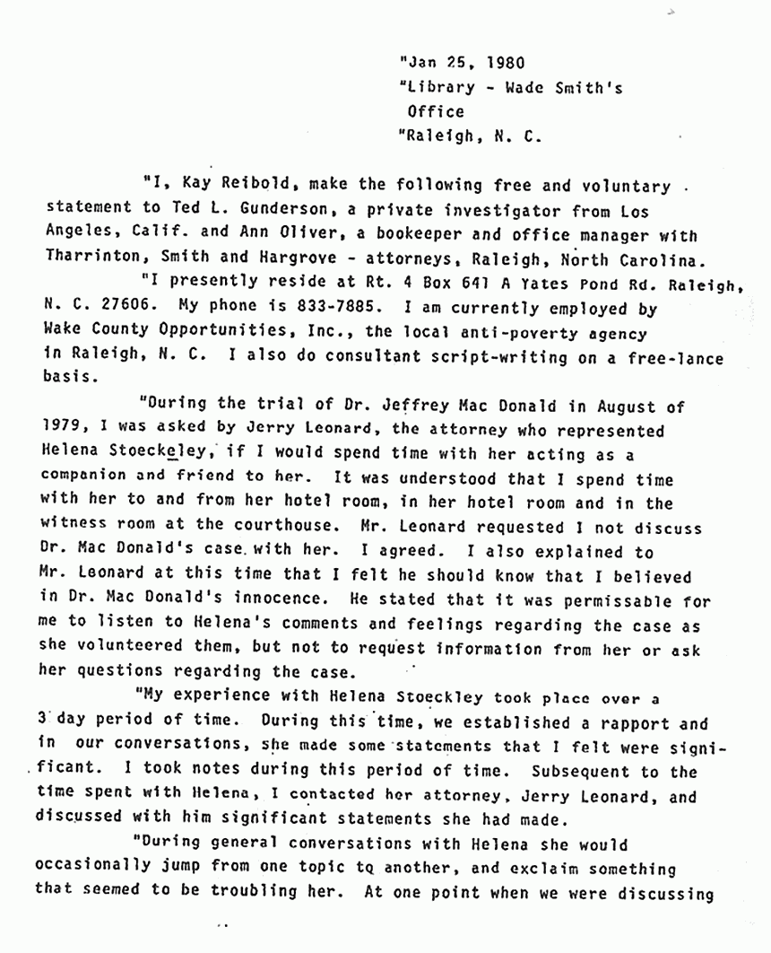Statement of Kay Reibold to Ted Gunderson re: Helena Stoeckley