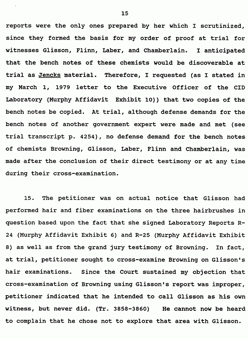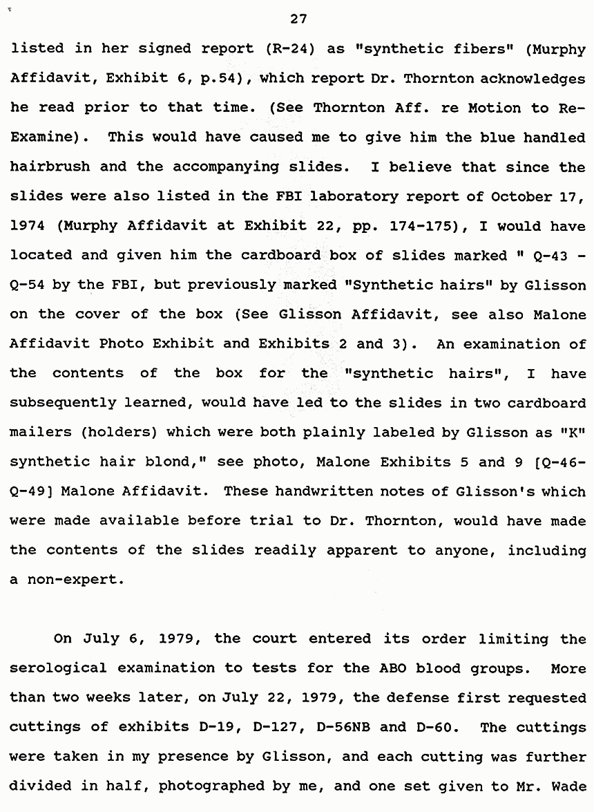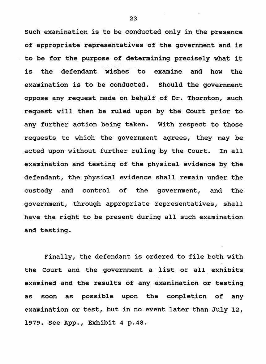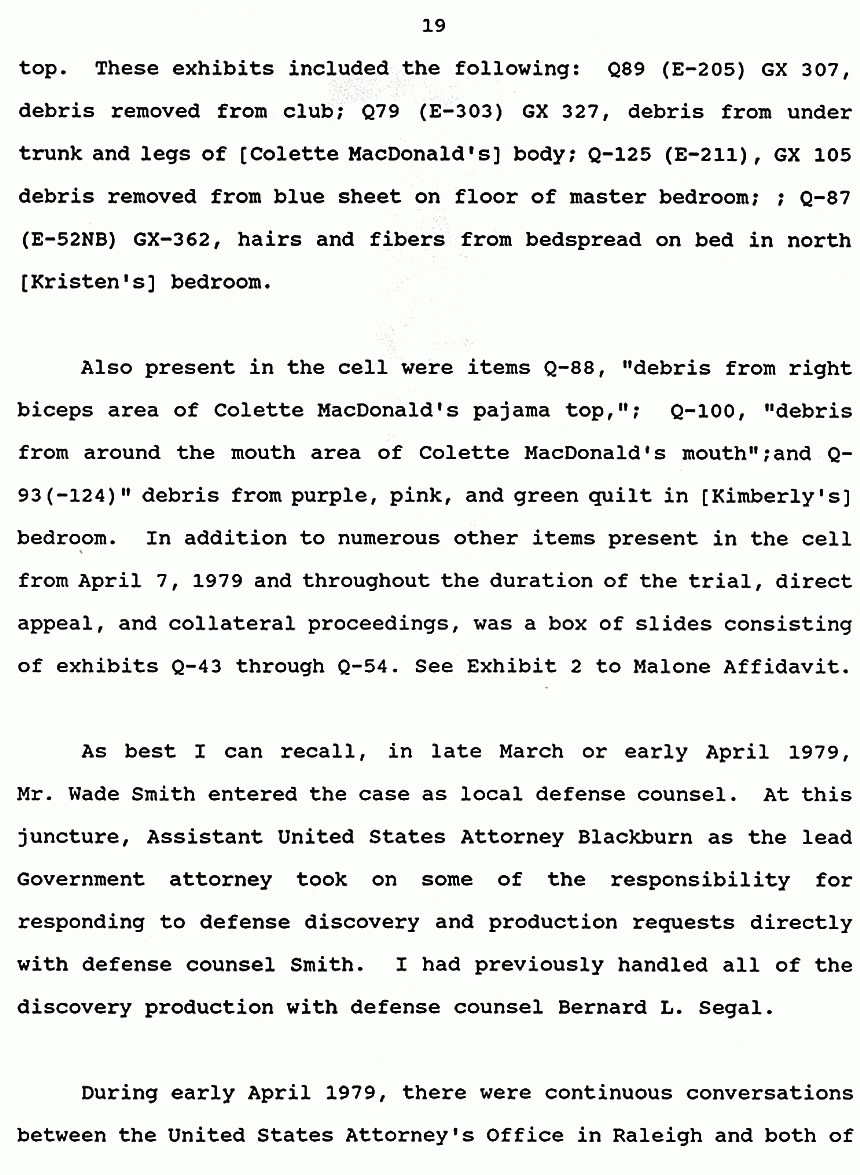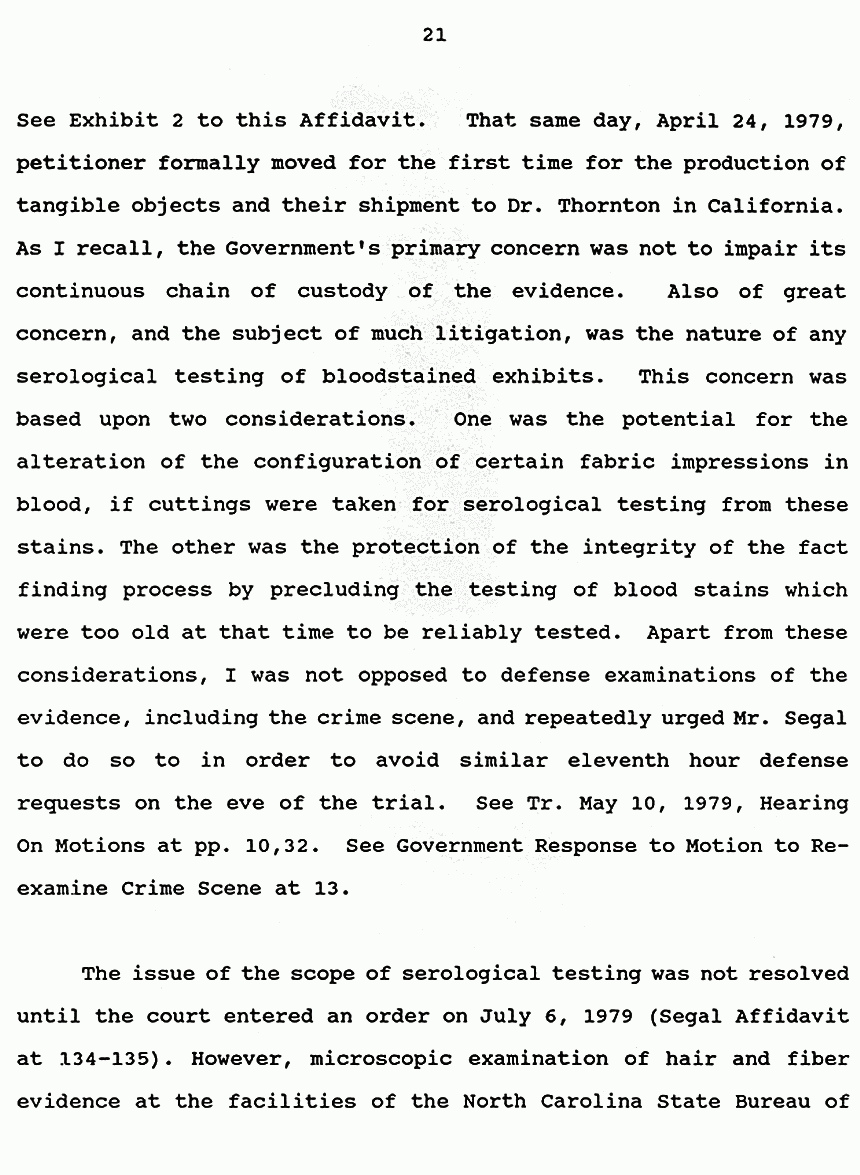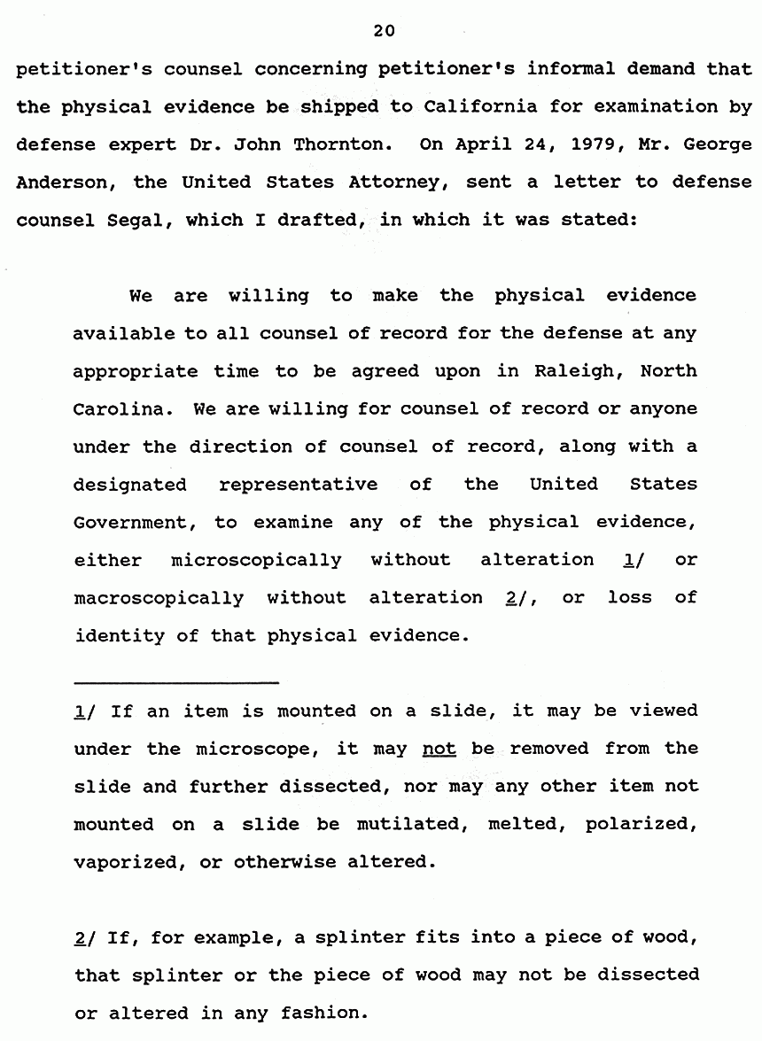 | Exhibit #2: | April 24, 1979: Letter from U. S. Attorney Geroge Anderson to Bernard Segal re: Defense request to forward physical evidence to California |