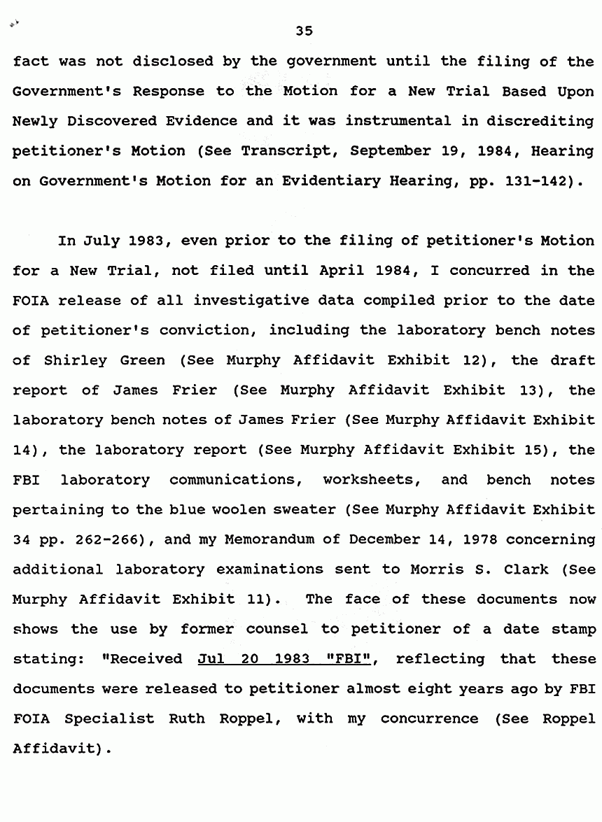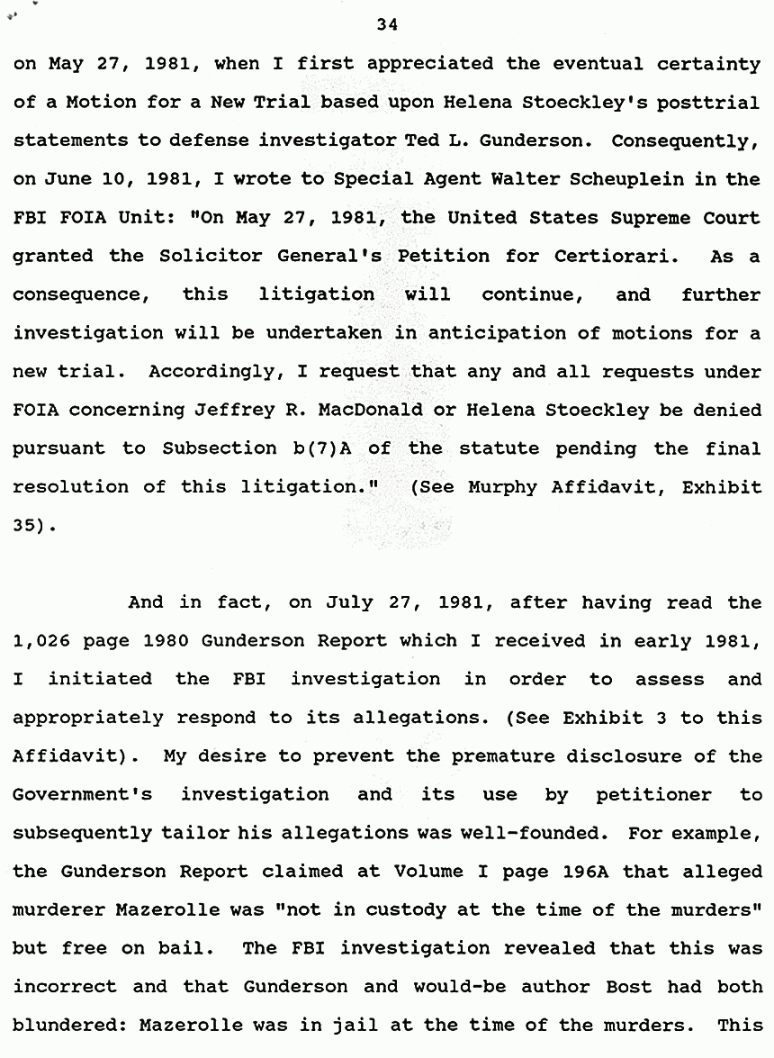 | Exhibit #3: | Document unavailable; refers to: July 27, 1981: Initiation by Brian Murtagh of the FBI investigation in order to access and appropriately respond to the allegations in the 1,026-page 1980 Gunderson Report, which Murtagh received in early 1981. (See p. 34 of Murtagh's Affidavit) |