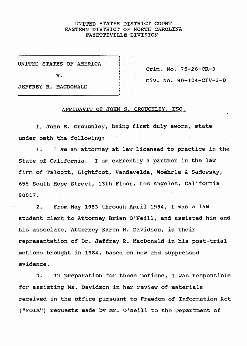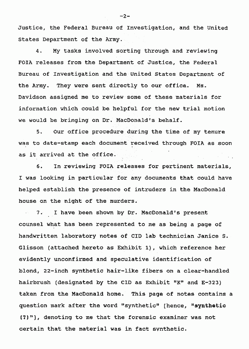 Affidavit of John Crouchley re: Lab notes of Janice Glisson (CID)