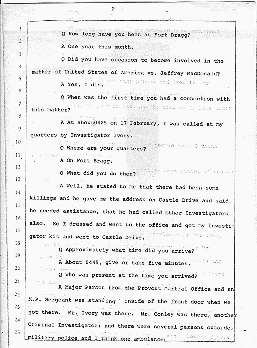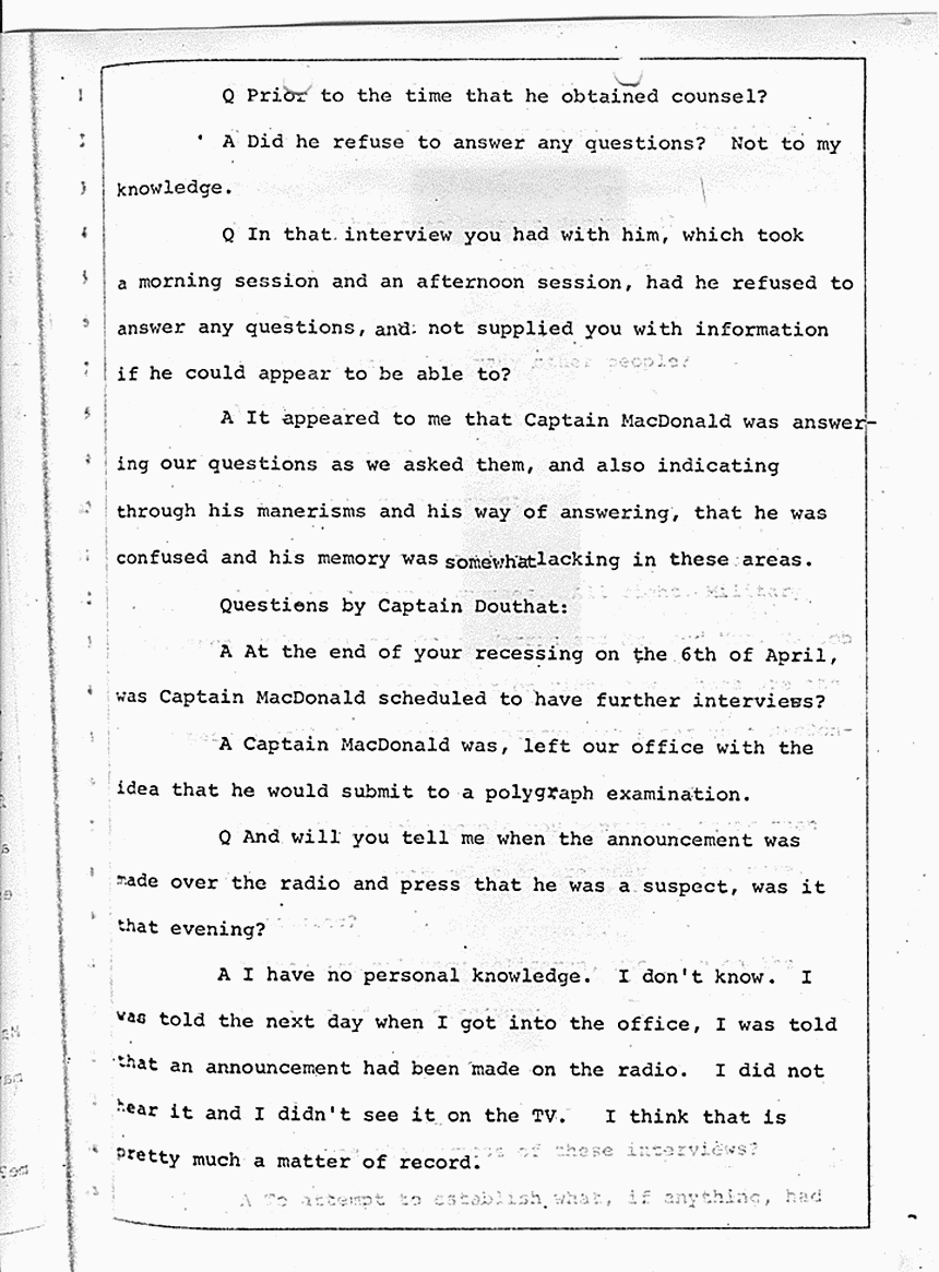Q Did you have occasion to become involved in the matter of United States of America vs. Jeffrey MacDonald?