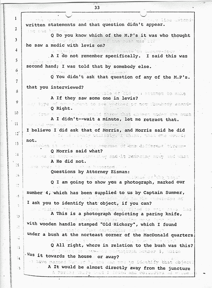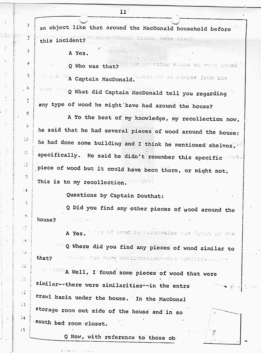 Q How do you account for Captain MacDonald's obtaining to the paring knife or gloves? Do you have any idea where he may have obtained those?