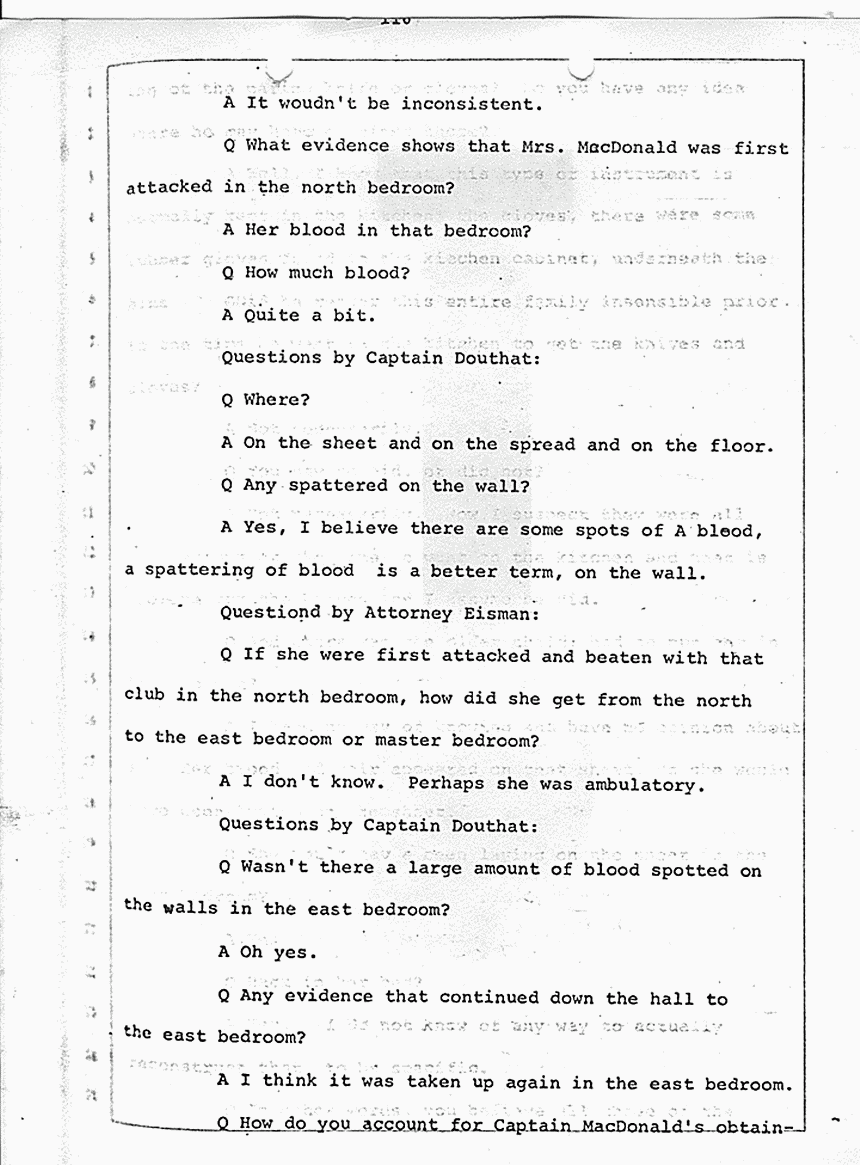 Q What evidence shows that Mrs. MacDonald was first attacked in the north bedroom?