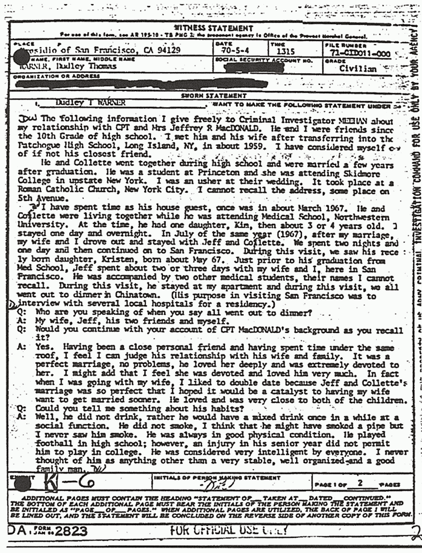 Statement of Dudley Warner