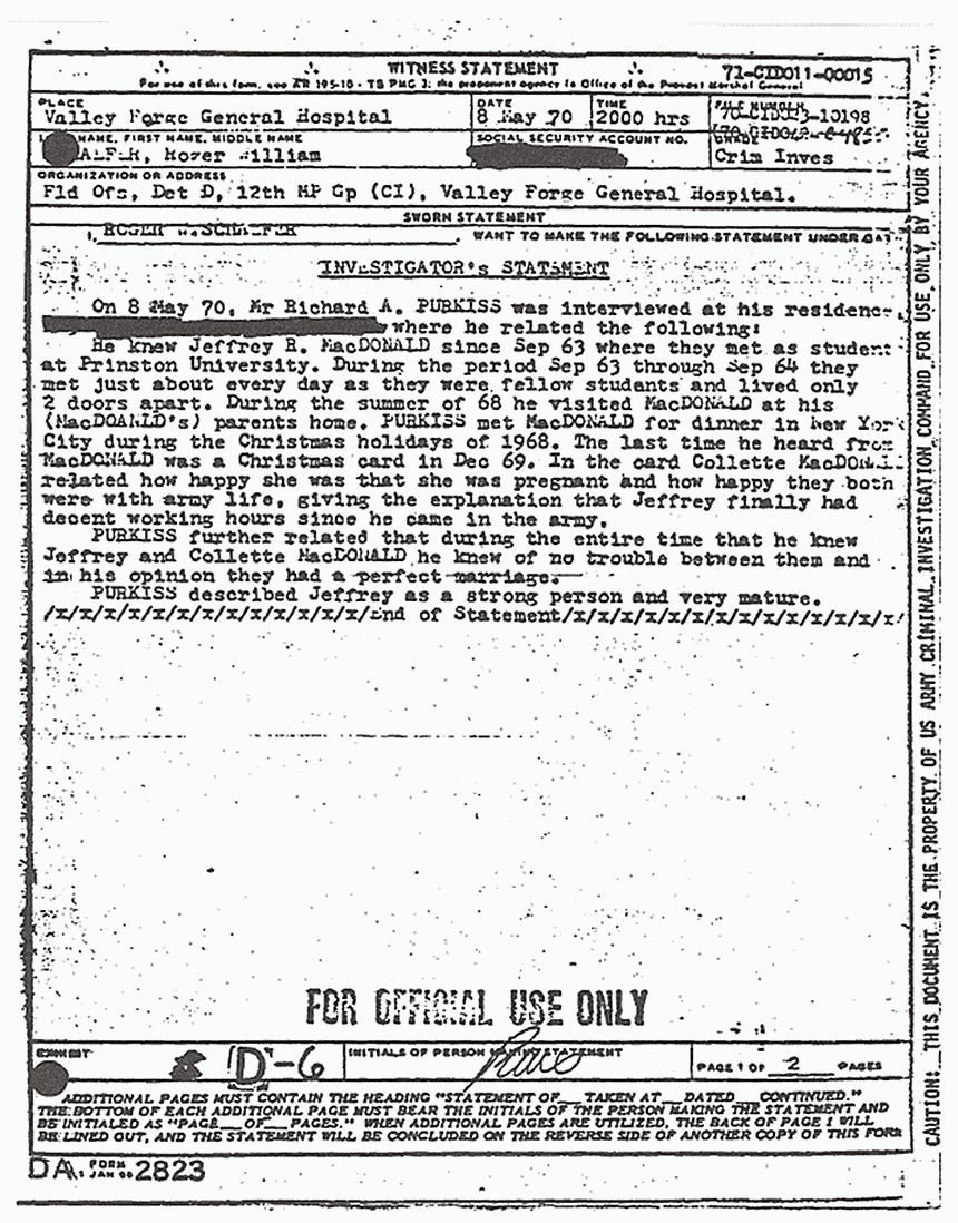 Statement of Roger Schaefer (CID) re: Interview of Richard Purkiss