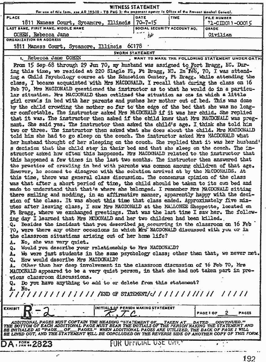 Statement of Rebecca Cohen re: Colette's Feb. 16 class discussion