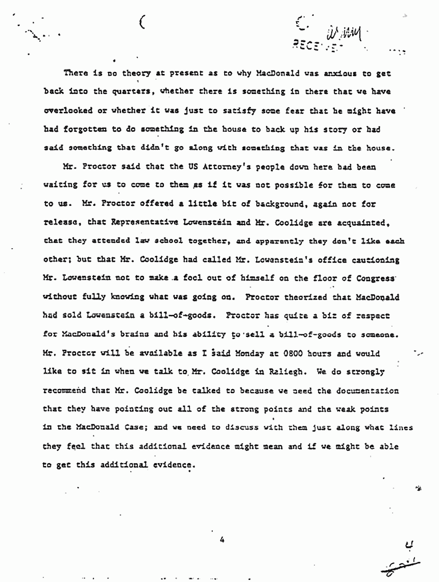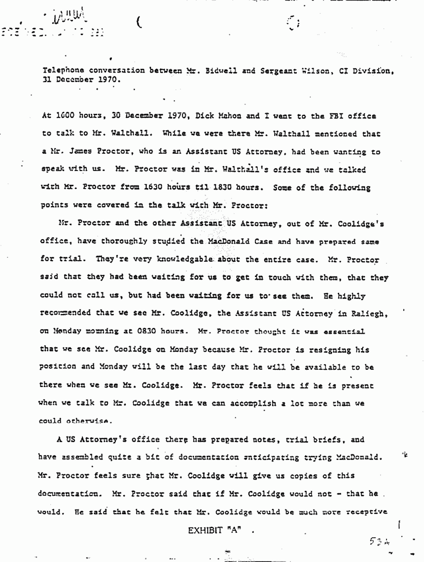 Telephone conversation between Mr. Bidwell and Sgt. Wilson re: statements of Jimmie Proctor