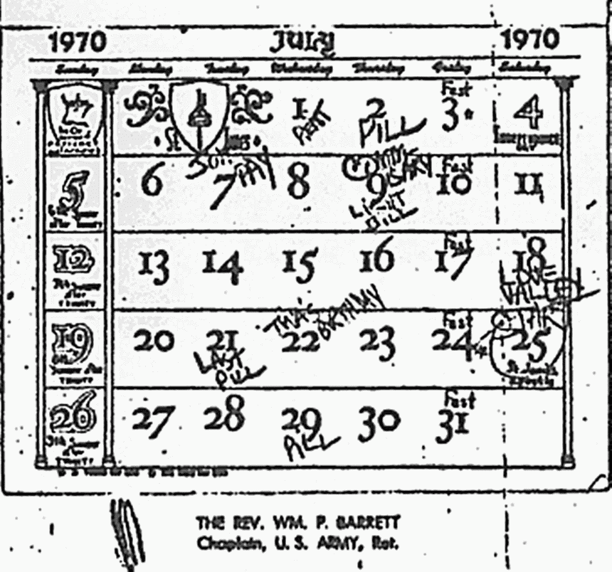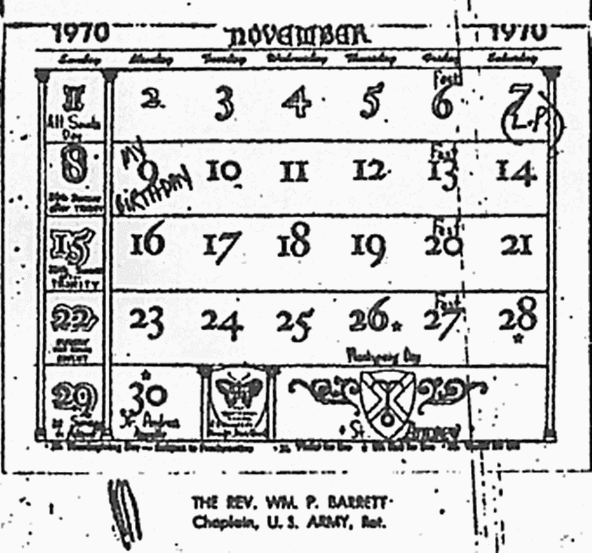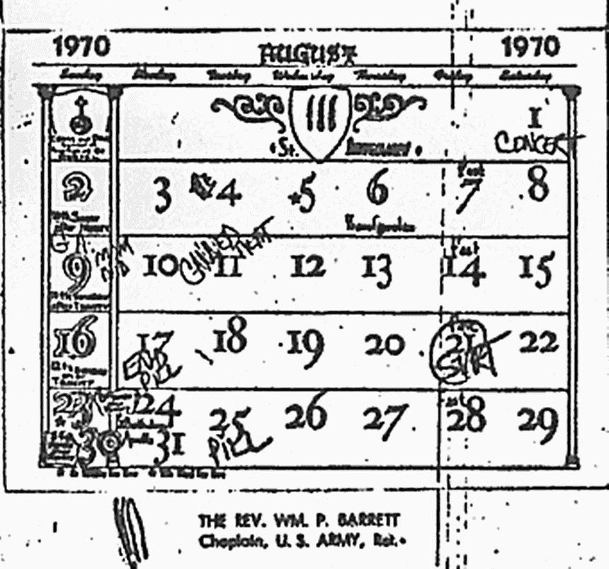 Cathy Perry's calendar (acquired by CID June 30, 1983)