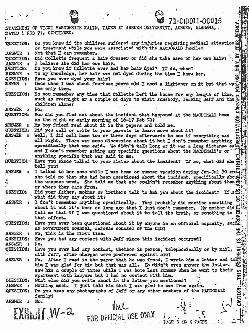 Statement of Vicki Kalin