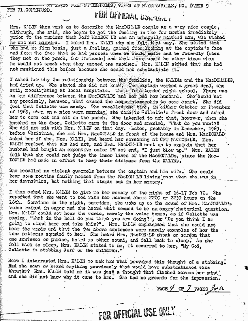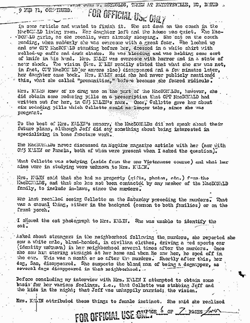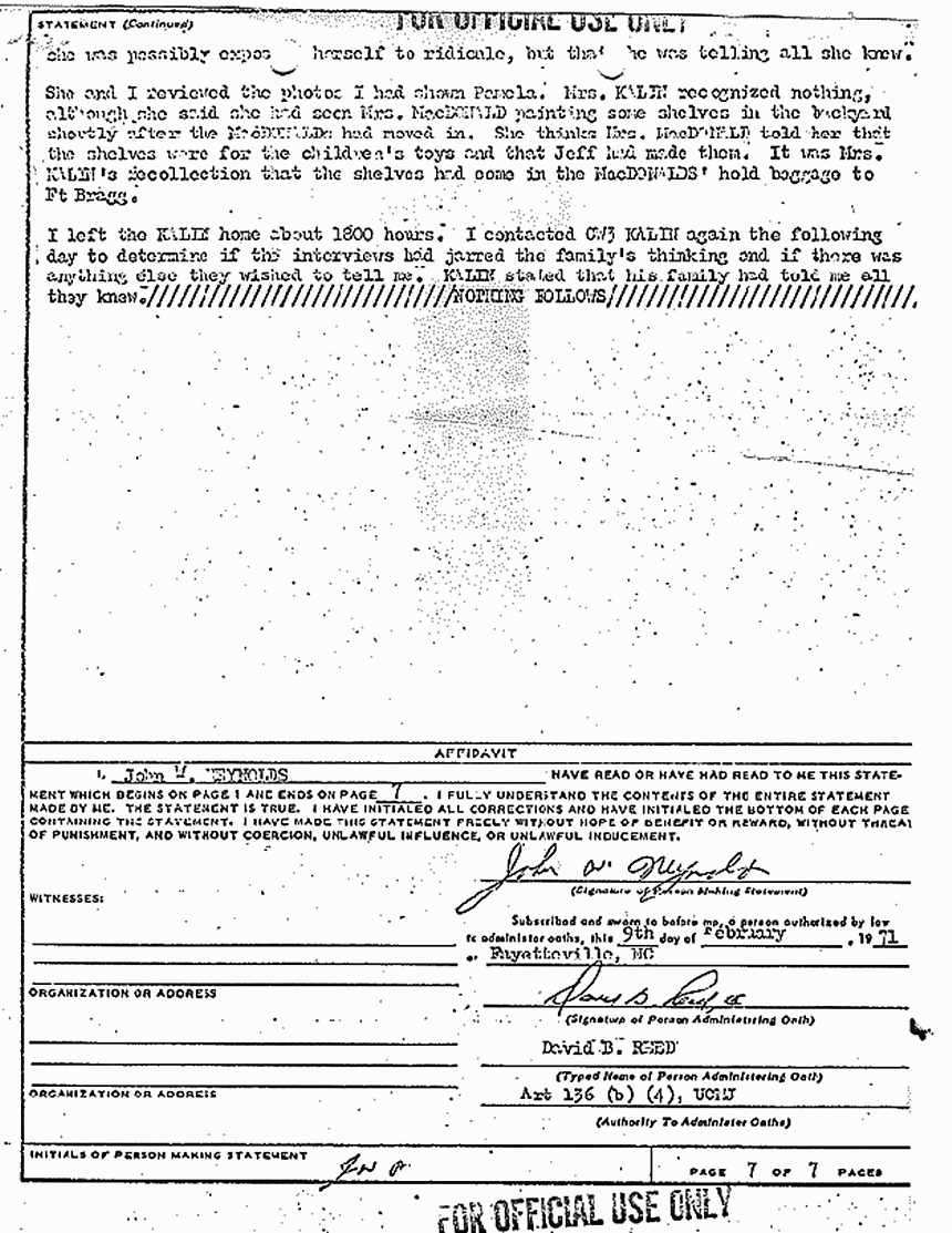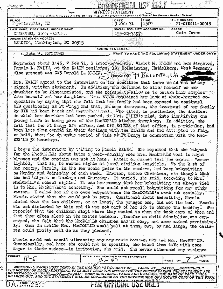 Statement of John Reynolds re: Feb. 2, 1971 interviews of Pamela and Violet Kalin