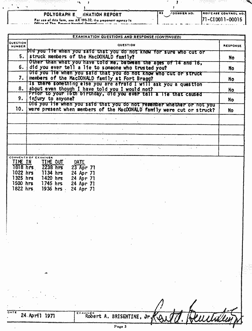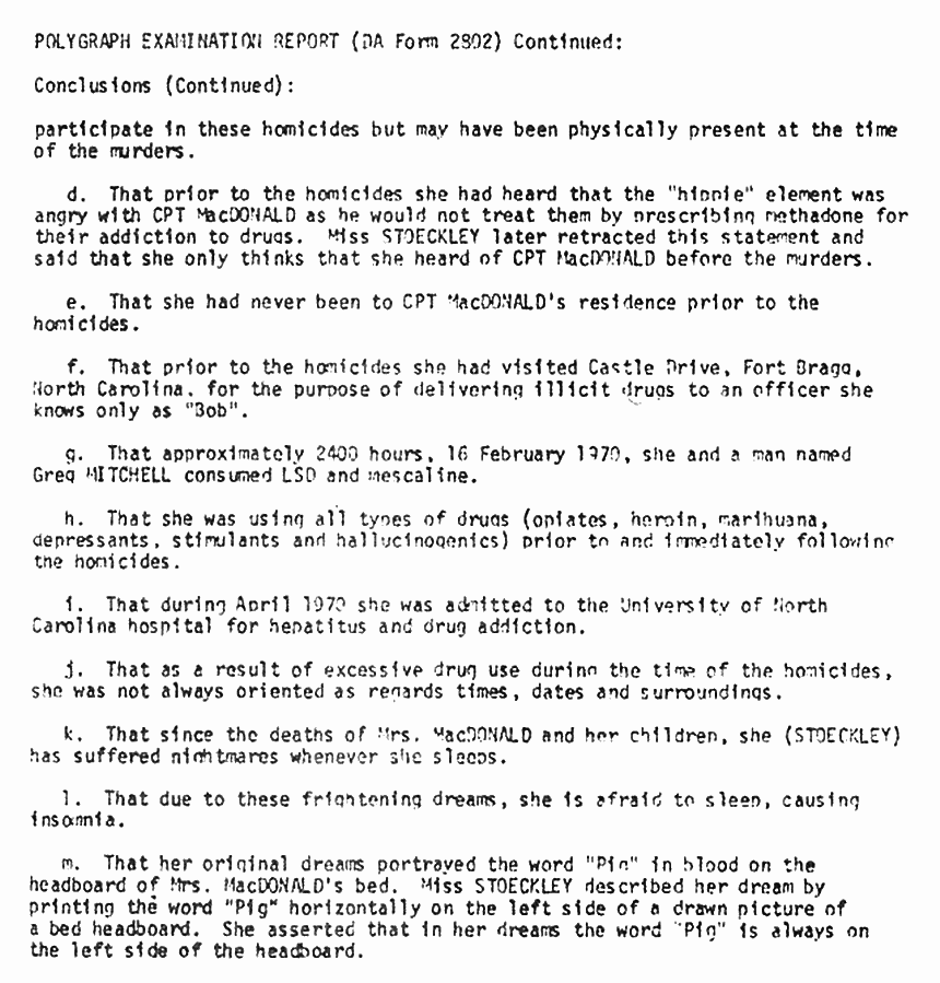 April 24, 1971: | Conclusions re: Robert Bristentine's polygraph examination of Helena Stoeckley |