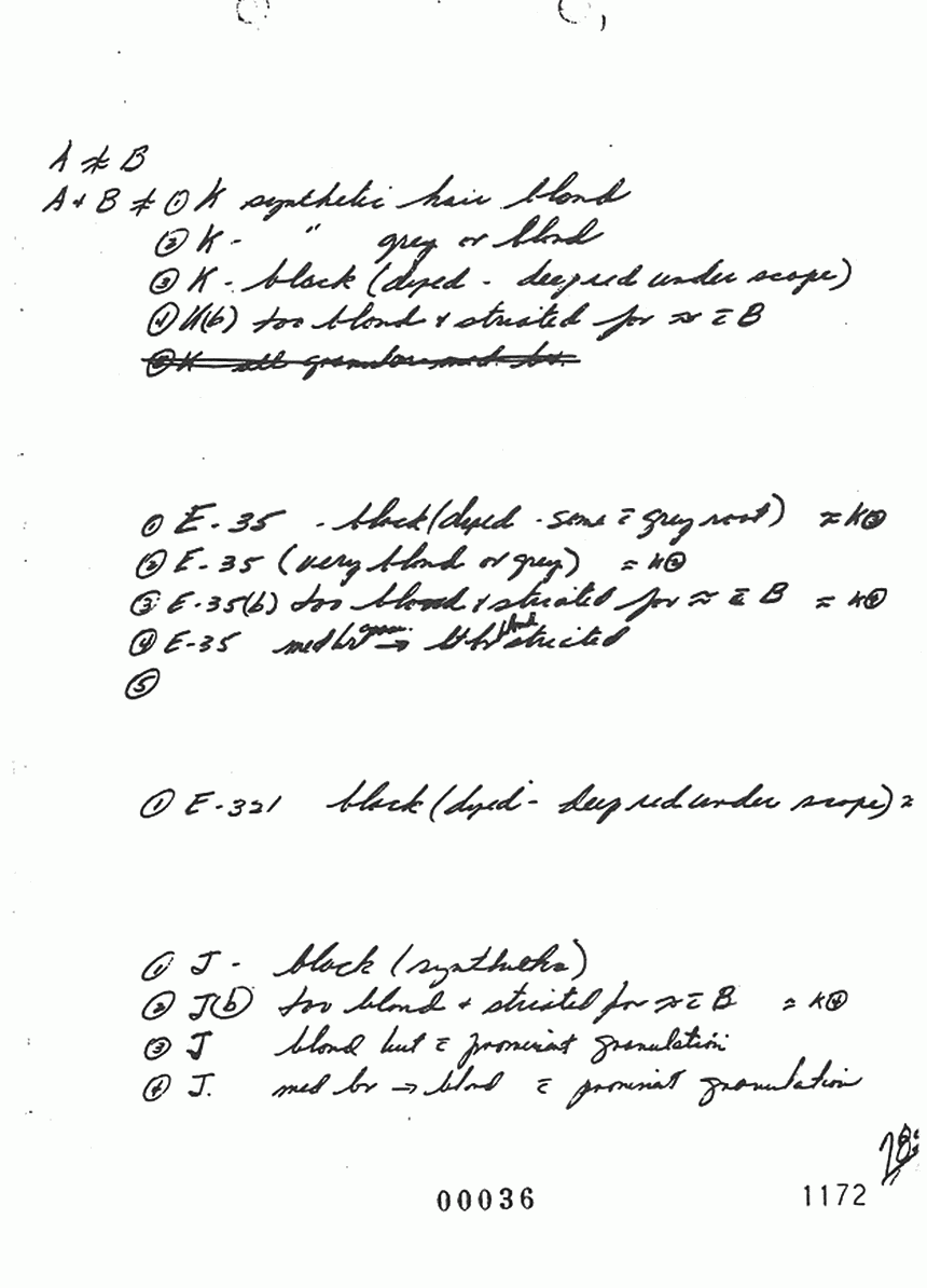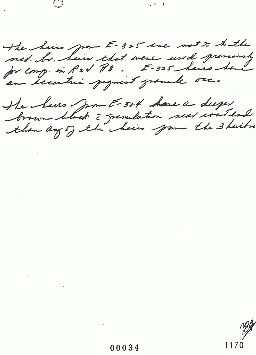 May 6-25, 1971: Notes, worksheets and lab reports re: CID chemist Janice Glisson's examinations of hair samples, p. 6 of 10
