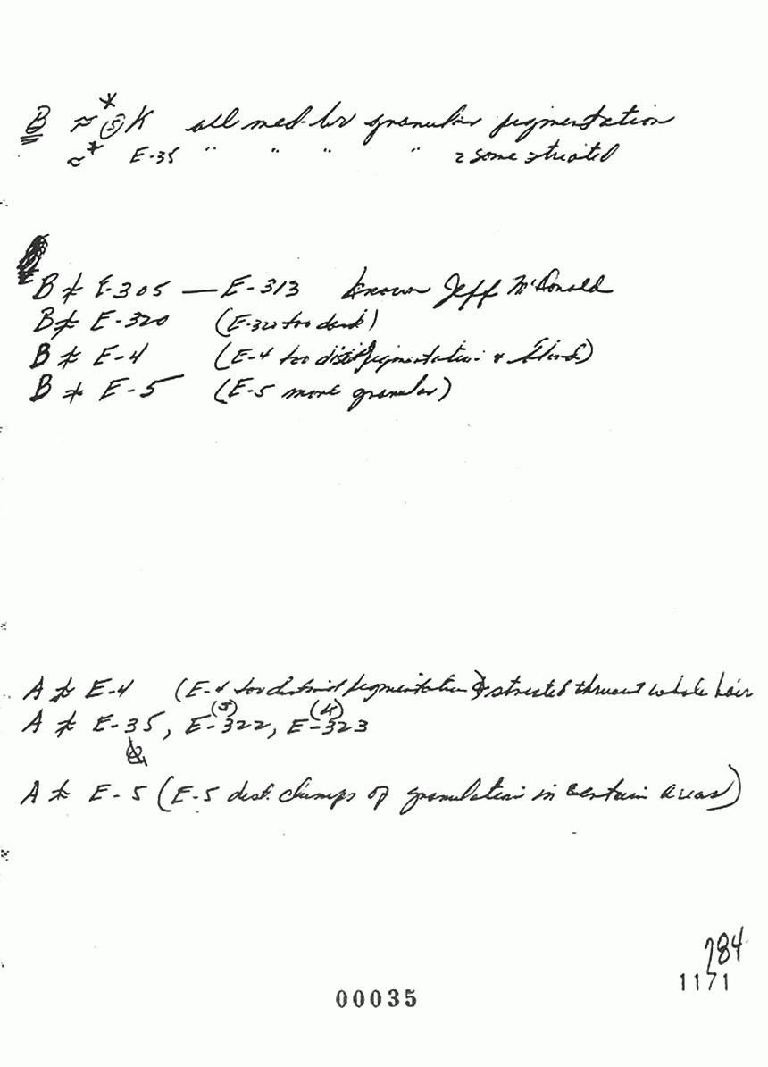 May 6-25, 1971: Notes, worksheets and lab reports re: CID chemist Janice Glisson's examinations of hair samples, p. 5 of 10
