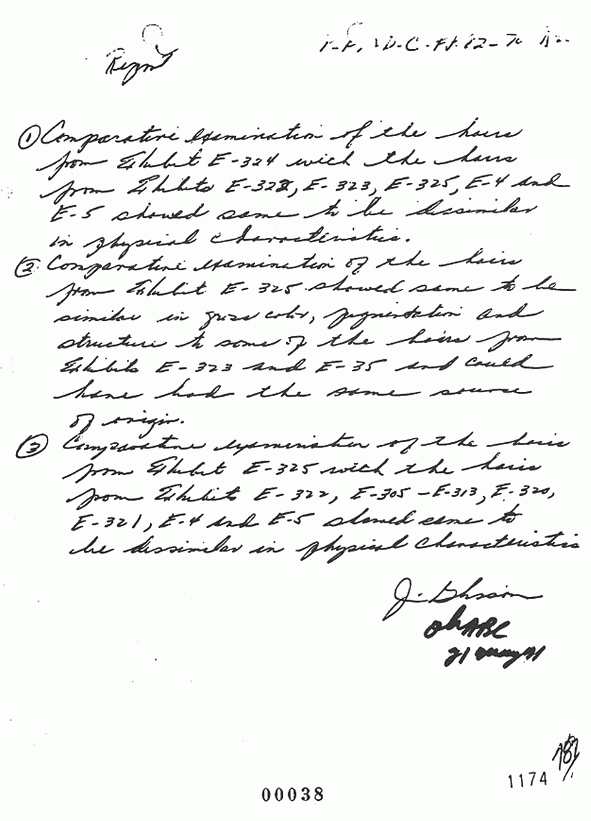 May 6-25, 1971: Notes, worksheets and lab reports re: CID chemist Janice Glisson's examinations of hair samples, p. 10 of 10