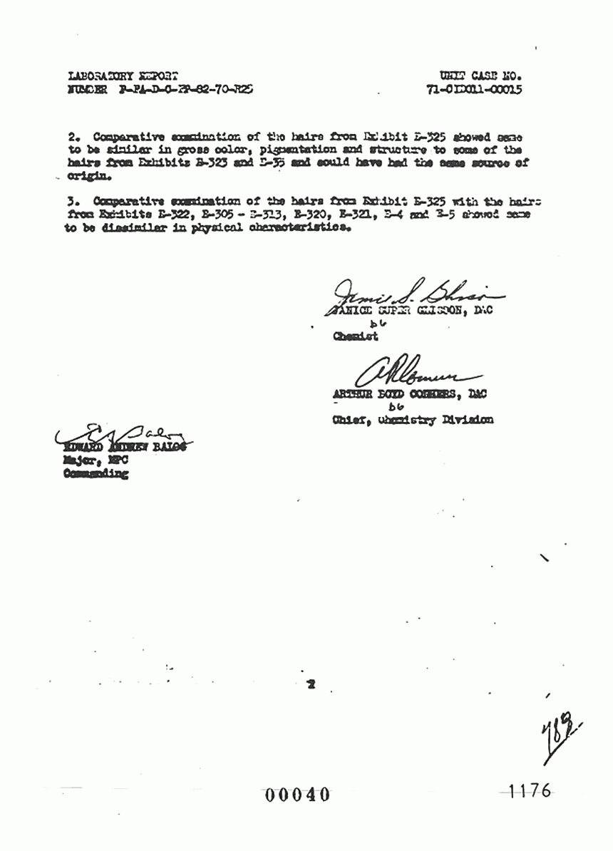 May 6-25, 1971: Notes, worksheets and lab reports re: CID chemist Janice Glisson's examinations of hair samples, p. 2 of 10
