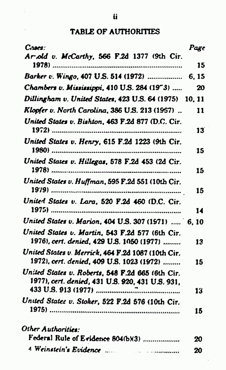Opinions re: Brief for the Respondent in Opposition, Table of Authorities