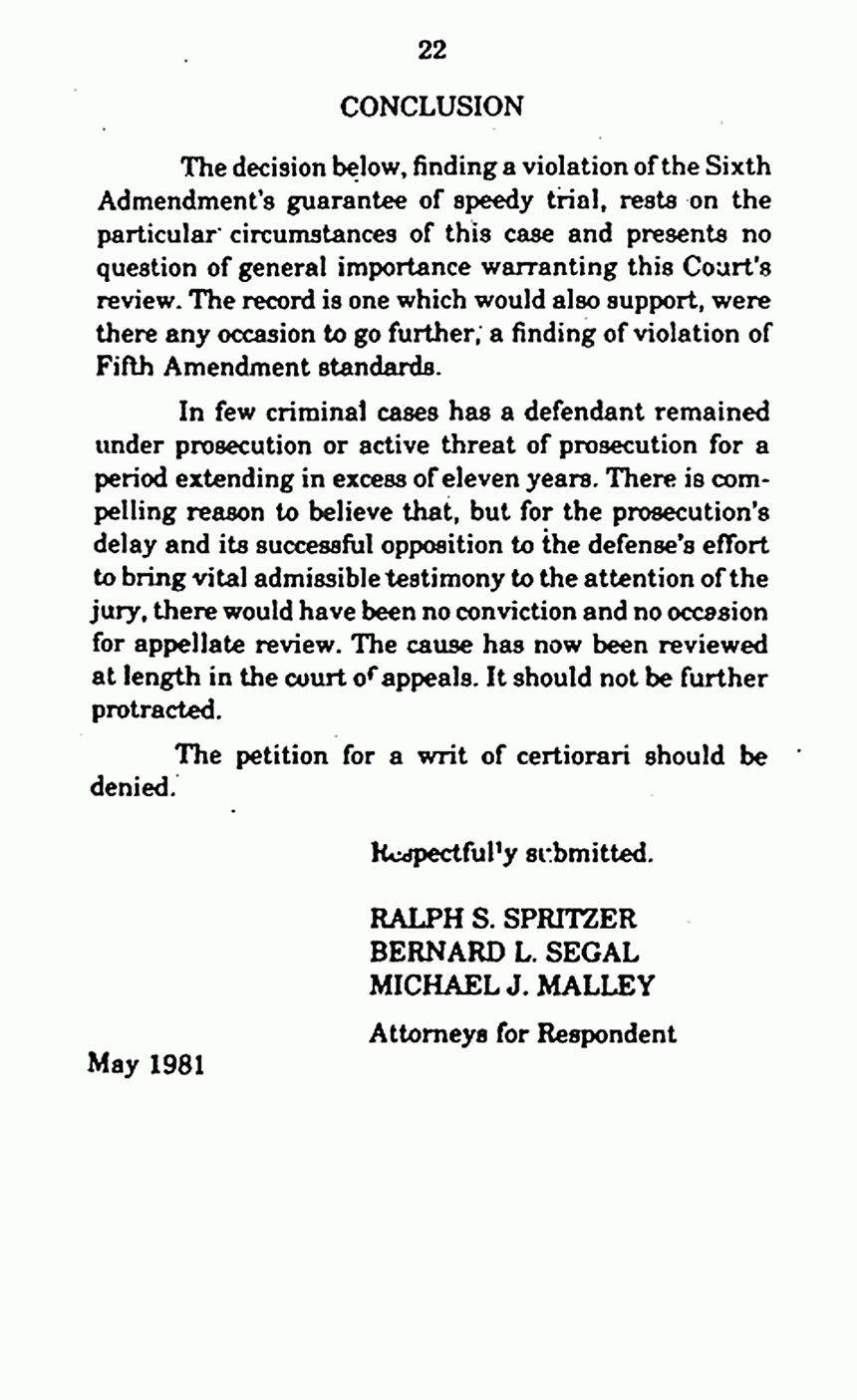 Opinions re: Brief for the Respondent in Opposition, p. 22 of 22