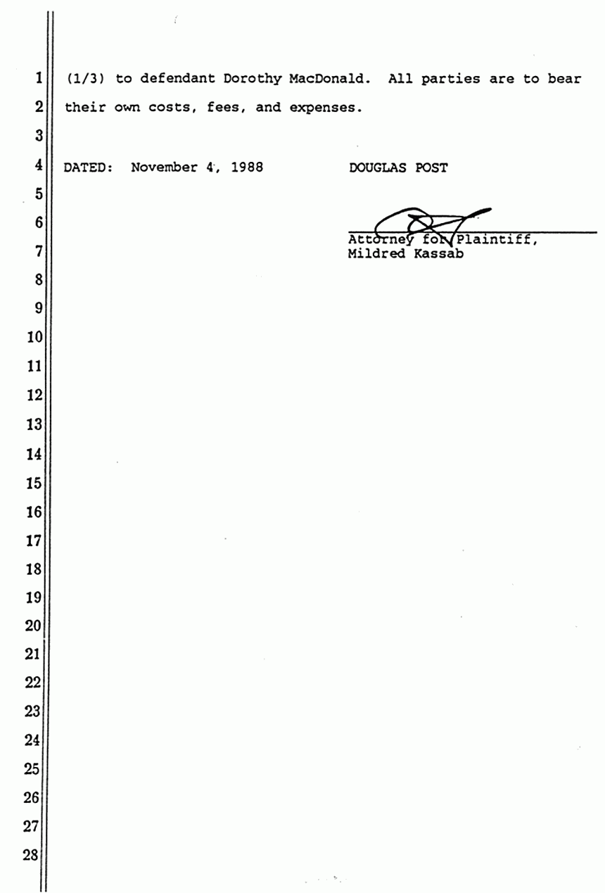 Mildred Kassab vs. Jeffrey MacDonald, Dorothy MacDonald and Does 1-100, inclusive