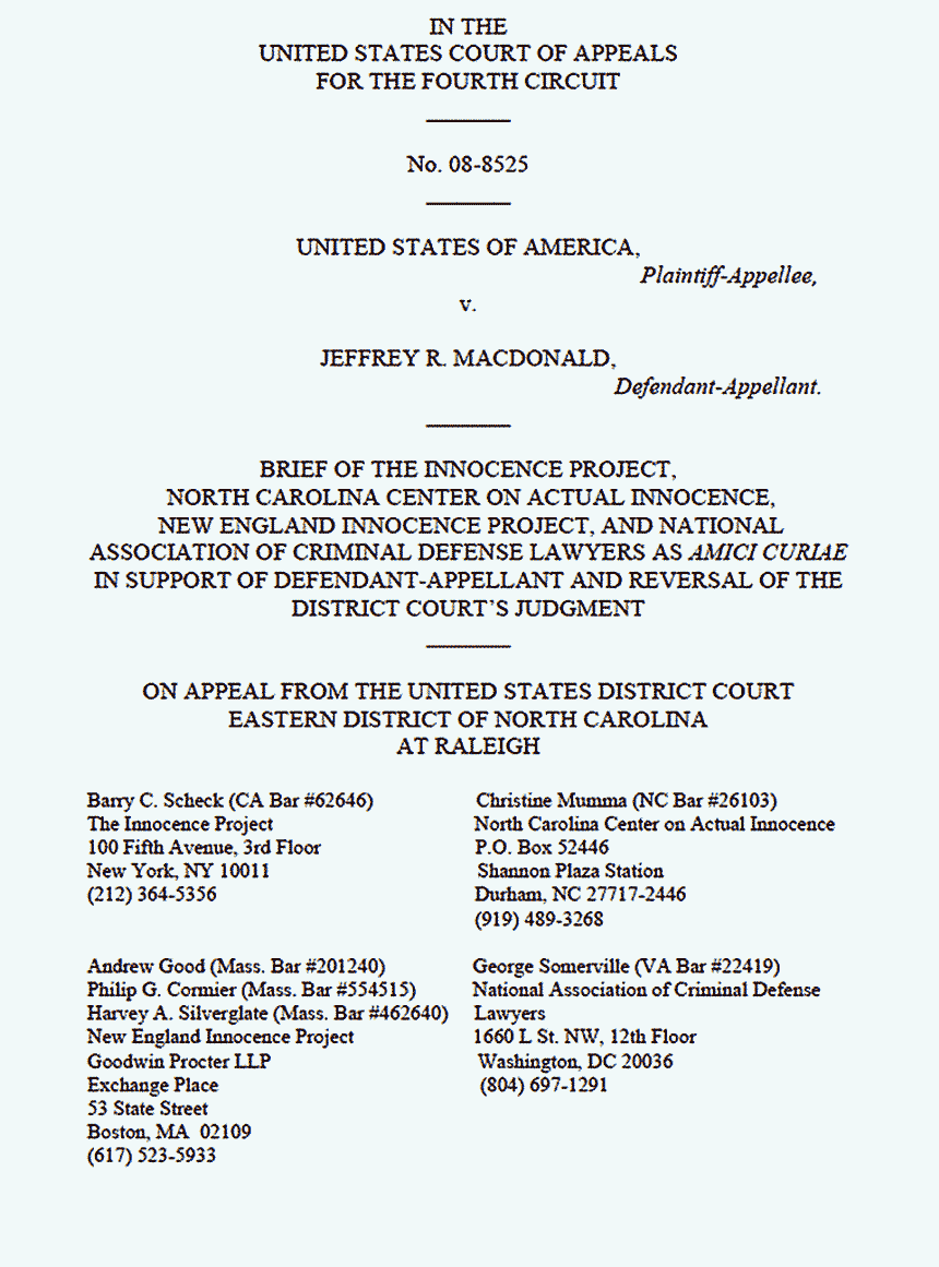 Brief of the Innocence Project, North Carolina Center on Actual Innocence, New England Innocence Project, and National Association of Criminal Defense Lawyers as Amici Curiae in Support of Defendant-Appellant and Reversal of the District Court's Judgment, p. 1 of 41