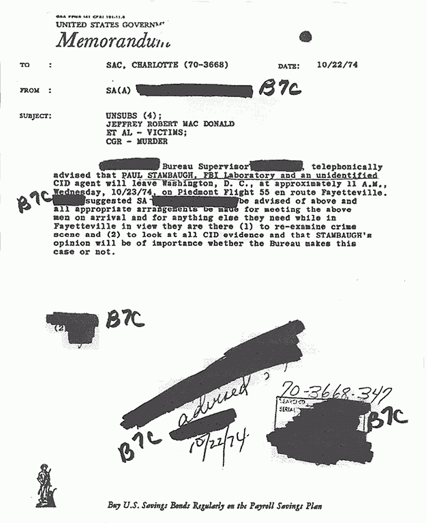 Memo re: Re-view of crime scene and CID evidence by Paul Stombaugh