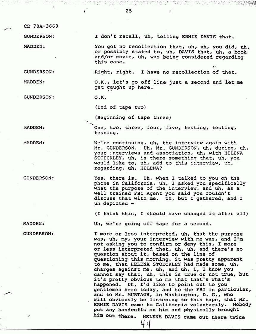 GUNDERSON: I have nothing further to say except, uh, I will submit this letter to you at this point, under the Freedom of Information Privacy Act for not only the interview today, but also the interviews where I, where I talked to you on the telephone.
