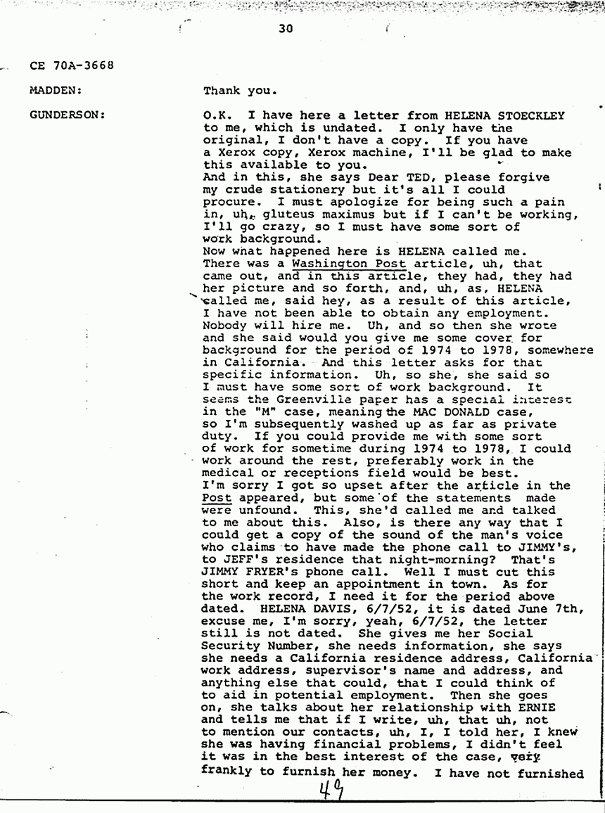 MADDEN: Did you interview HELENA STOECKLEY?