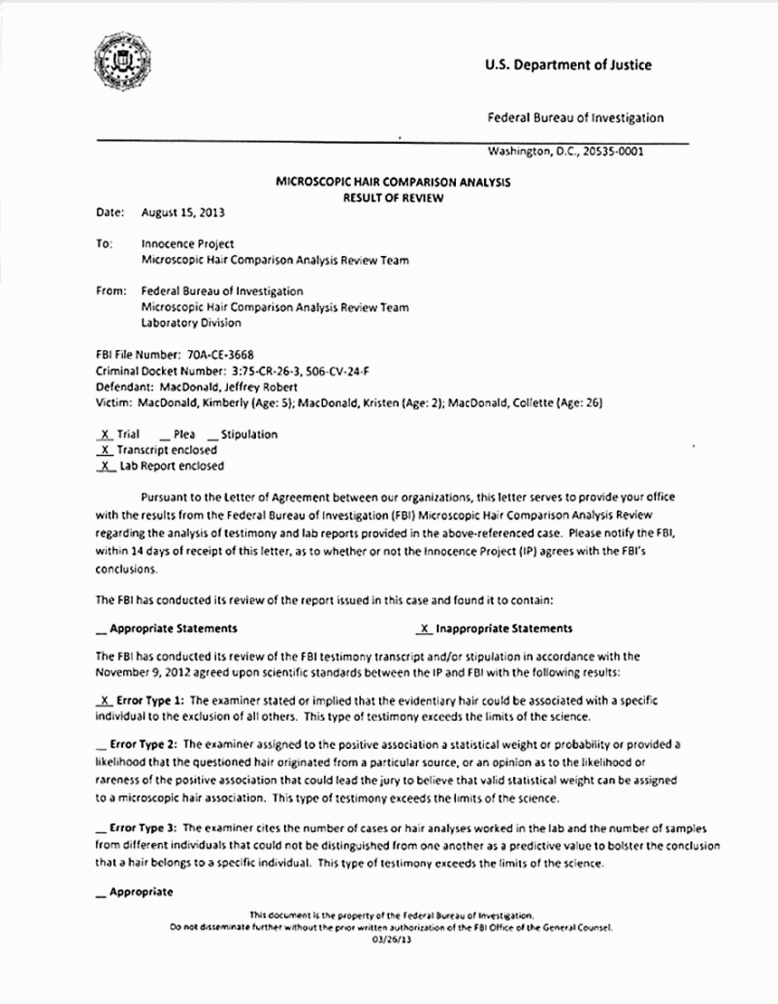Dec. 31, 1990: Report of FBI Laboratory (Michael Malone)