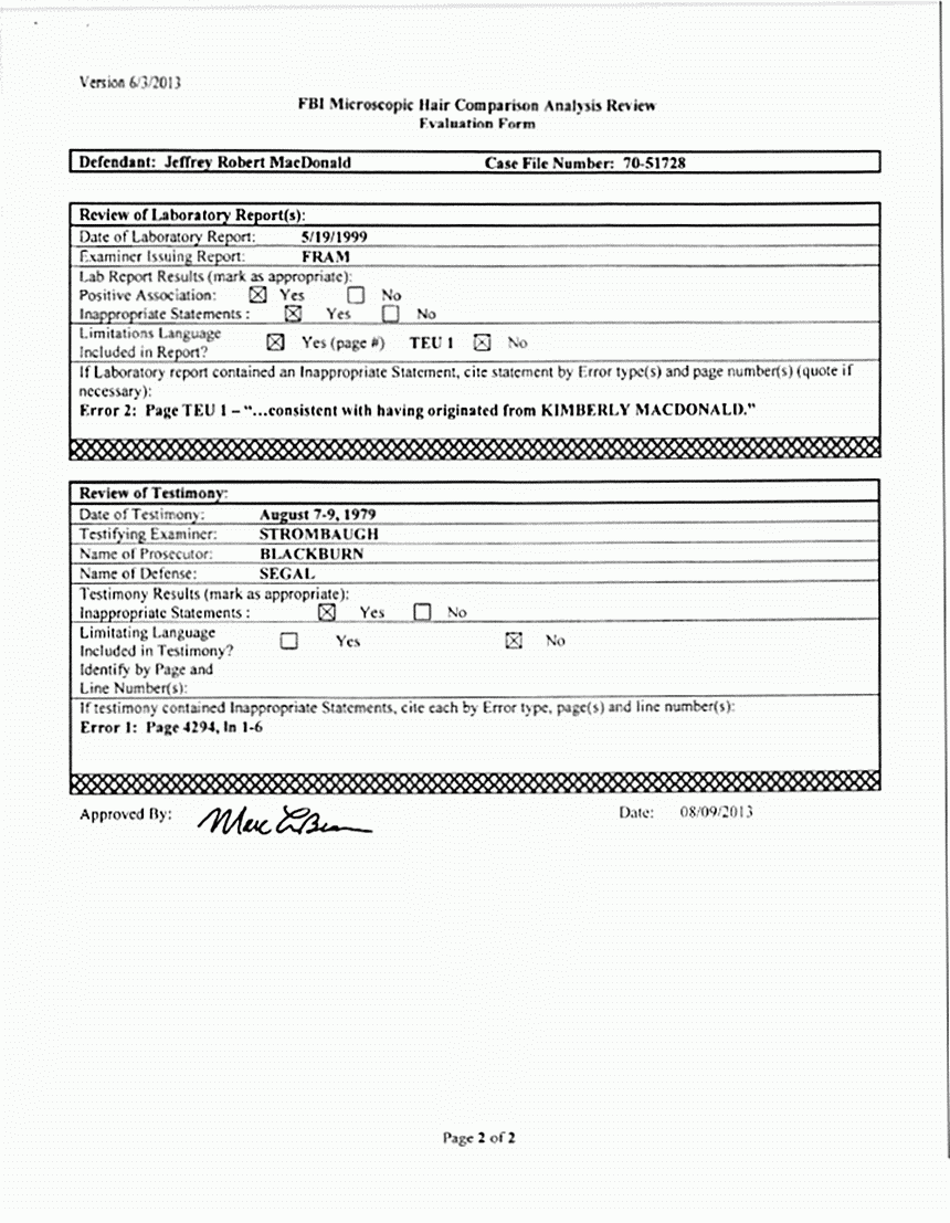 May 19, 1999: Report of FBI Laboratory (Robert Fram) and Examination Results