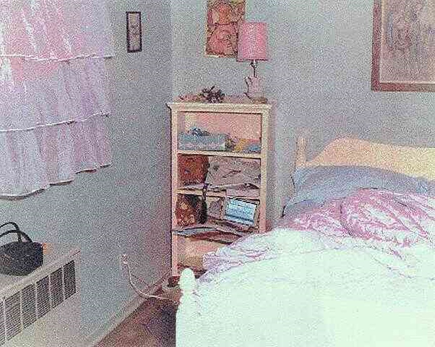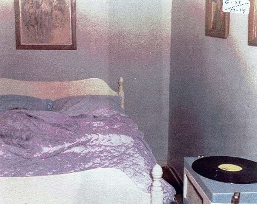 D130 | Red-brown stain on headboard of bed in south bedroom |