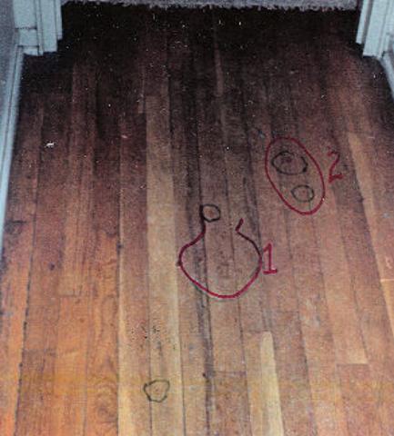 Body of Colette MacDonald and hall floor stains which may include stains of this exhibit