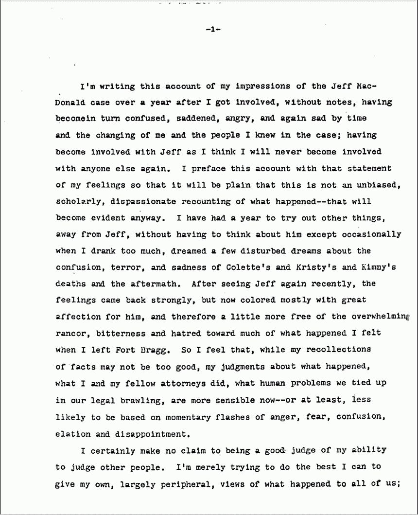 July 6, 1971: Journal of Michael Malley re: his "last uncolicited interference" with the MacDonald case, p. 3 of 102