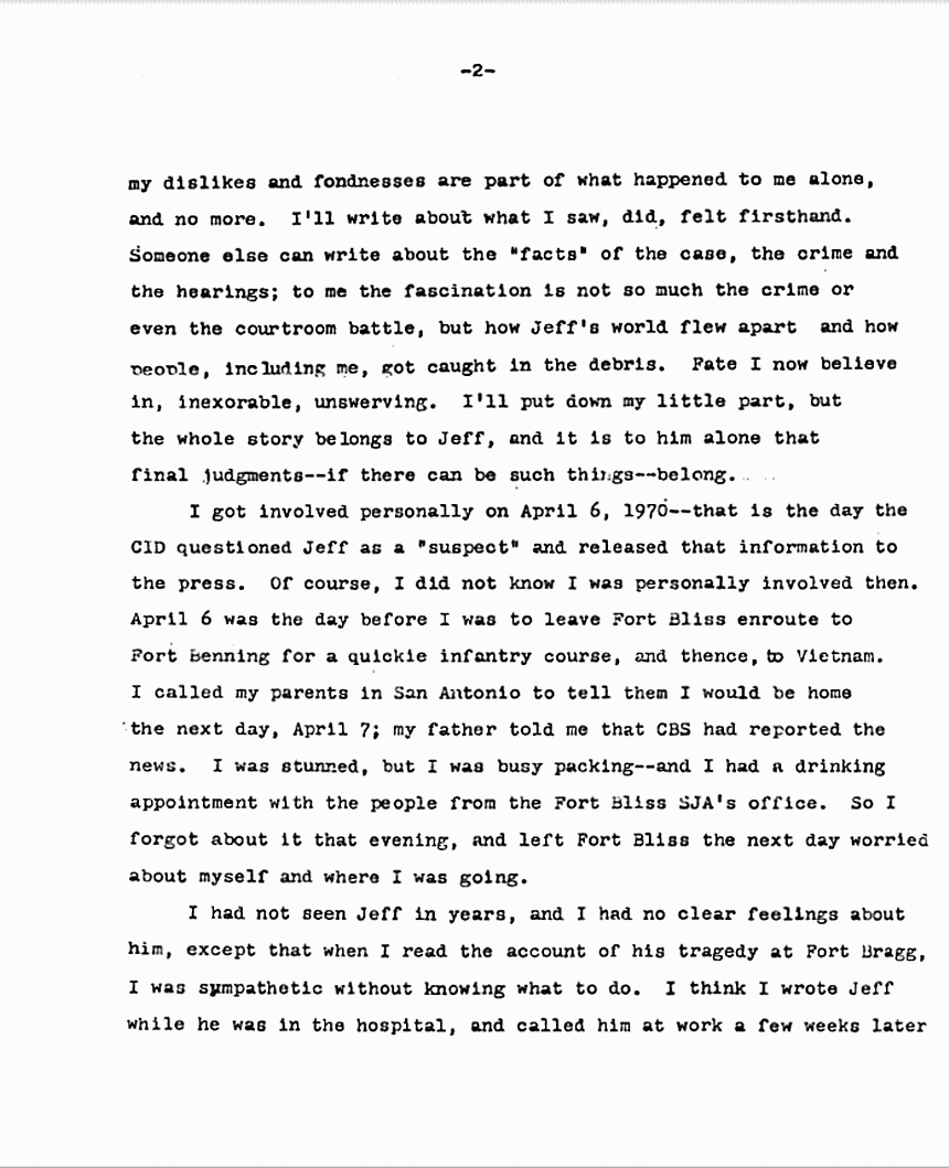 July 6, 1971: Journal of Michael Malley re: his "last uncolicited interference" with the MacDonald case, p. 2 of 102