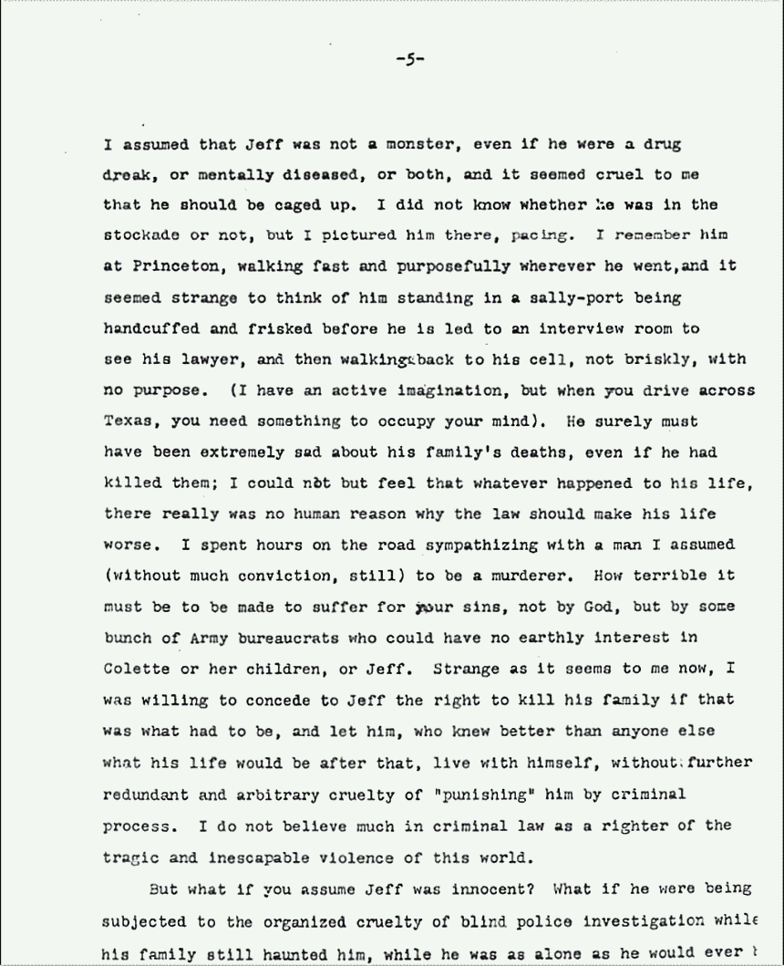 July 6, 1971: Journal of Michael Malley re: his "last uncolicited interference" with the MacDonald case, p. 5 of 102