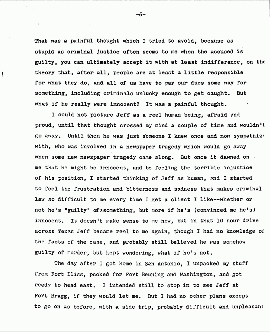 July 6, 1971: Journal of Michael Malley re: his "last uncolicited interference" with the MacDonald case, p. 6 of 102