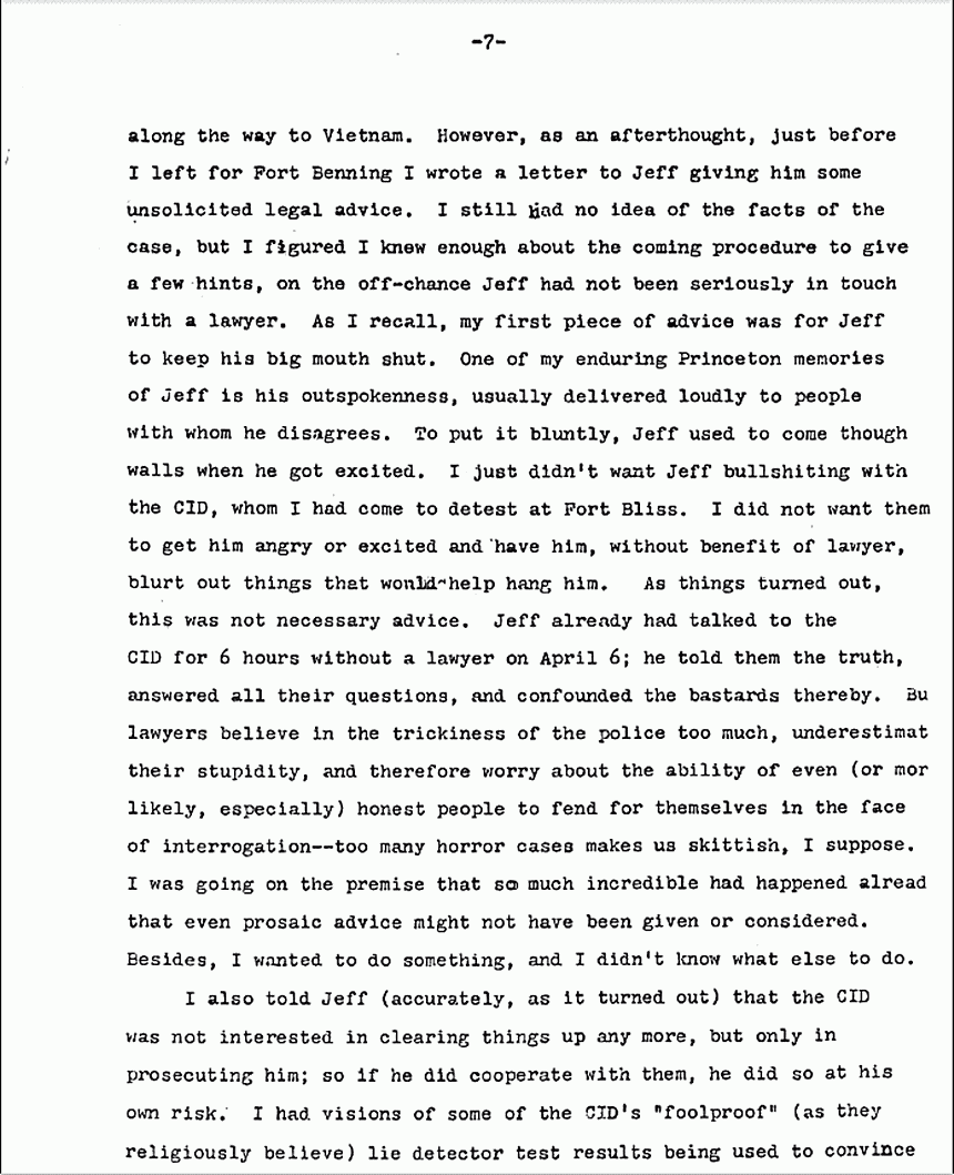 July 6, 1971: Journal of Michael Malley re: his "last uncolicited interference" with the MacDonald case, p. 7 of 102