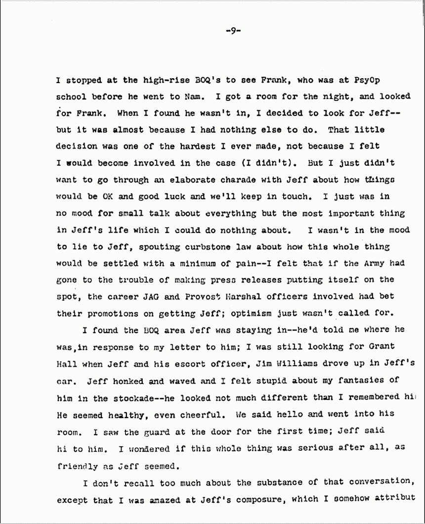 July 6, 1971: Journal of Michael Malley re: his "last uncolicited interference" with the MacDonald case, p. 9 of 102