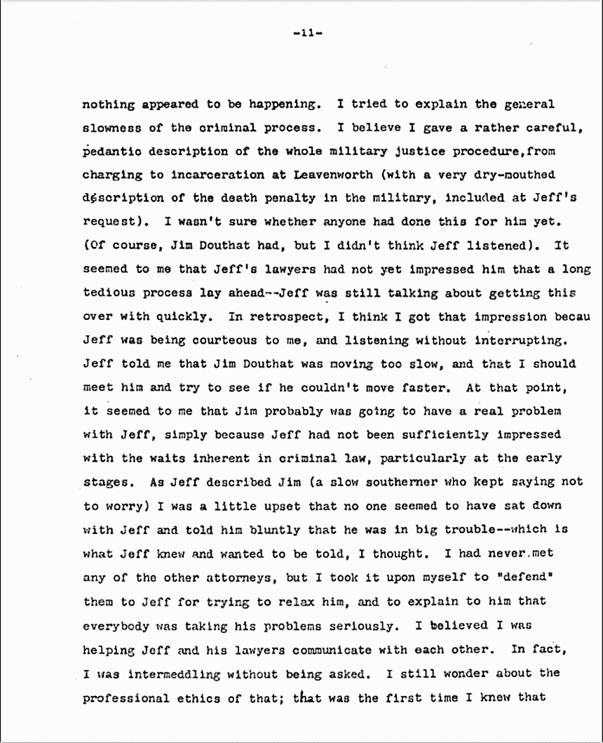 July 6, 1971: Journal of Michael Malley re: his "last uncolicited interference" with the MacDonald case, p. 11 of 102