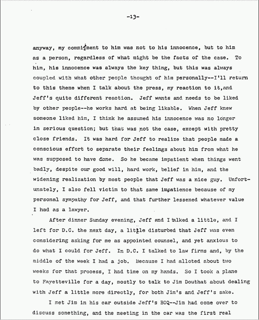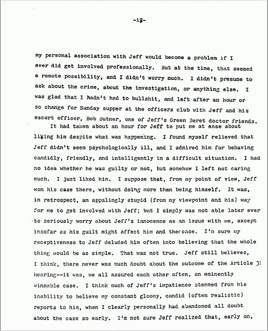 July 6, 1971: Journal of Michael Malley re: his "last uncolicited interference" with the MacDonald case, p. 13 of 102