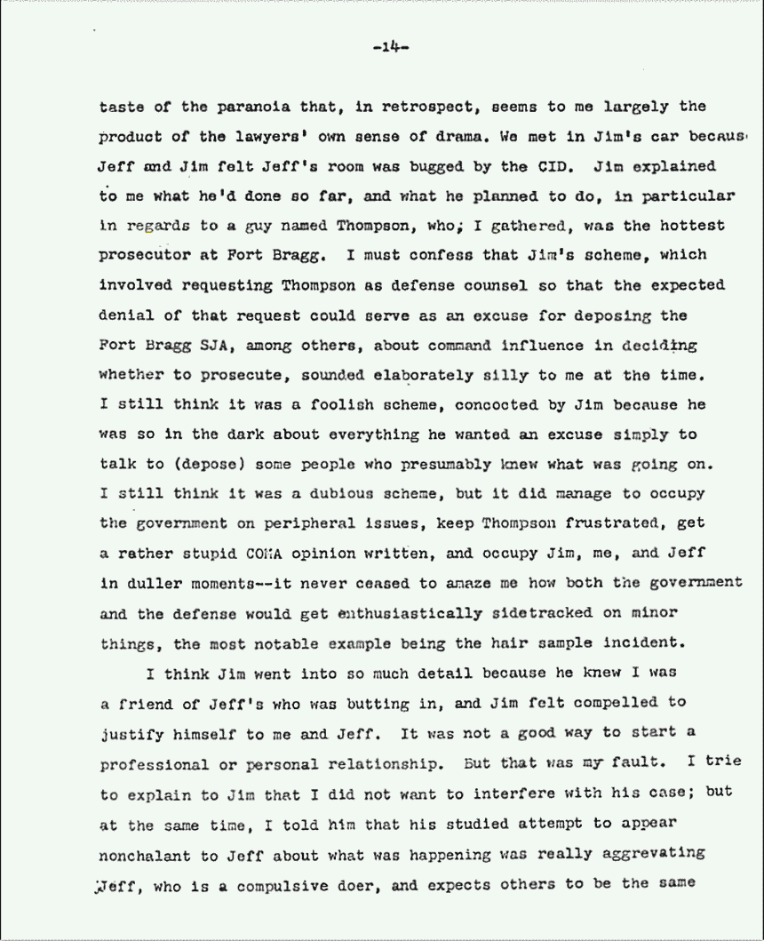 July 6, 1971: Journal of Michael Malley re: his "last uncolicited interference" with the MacDonald case, p. 14 of 102
