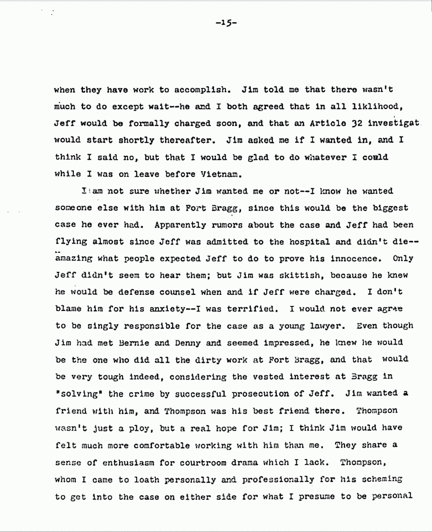July 6, 1971: Journal of Michael Malley re: his "last uncolicited interference" with the MacDonald case, p. 15 of 102