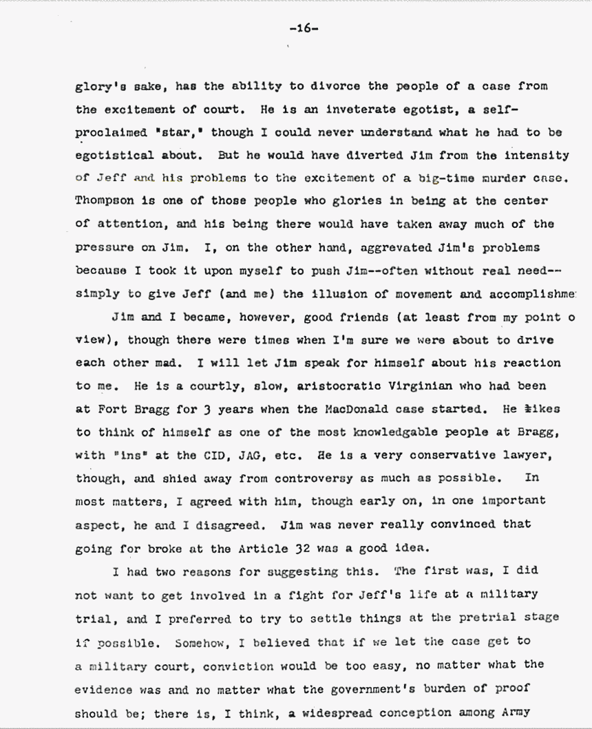 July 6, 1971: Journal of Michael Malley re: his "last uncolicited interference" with the MacDonald case, p. 16 of 102
