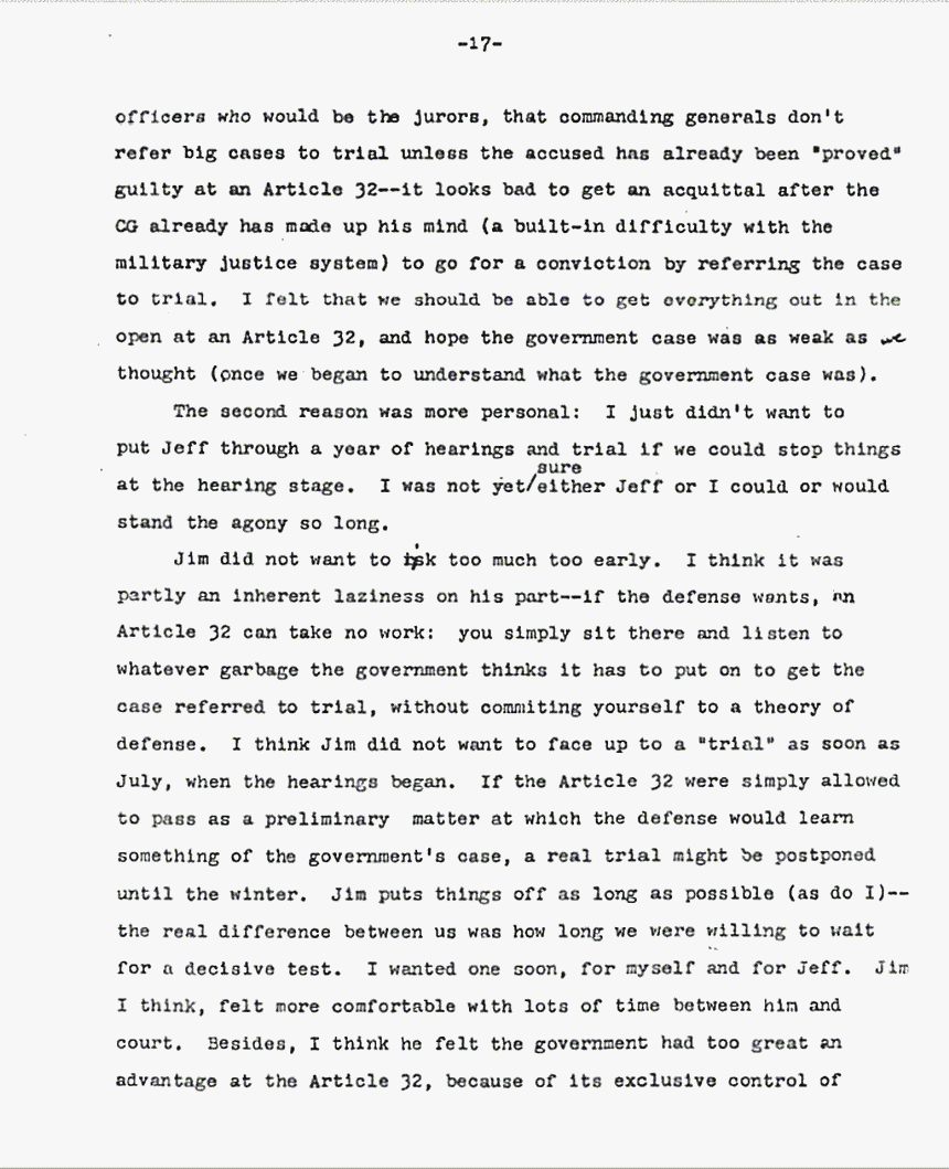 July 6, 1971: Journal of Michael Malley re: his "last uncolicited interference" with the MacDonald case, p. 17 of 102