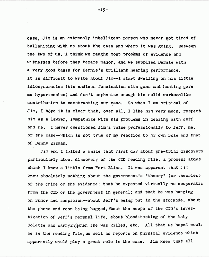 July 6, 1971: Journal of Michael Malley re: his "last uncolicited interference" with the MacDonald case, p. 19 of 102