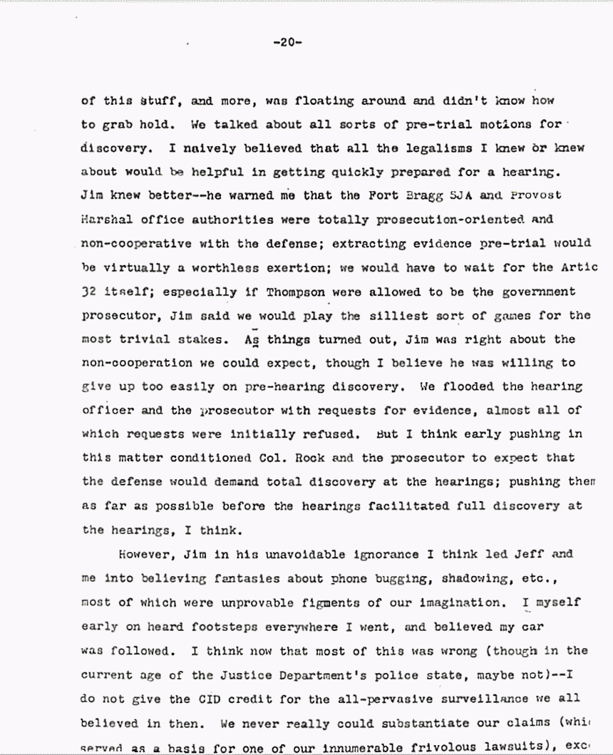 July 6, 1971: Journal of Michael Malley re: his "last uncolicited interference" with the MacDonald case, p. 20 of 102
