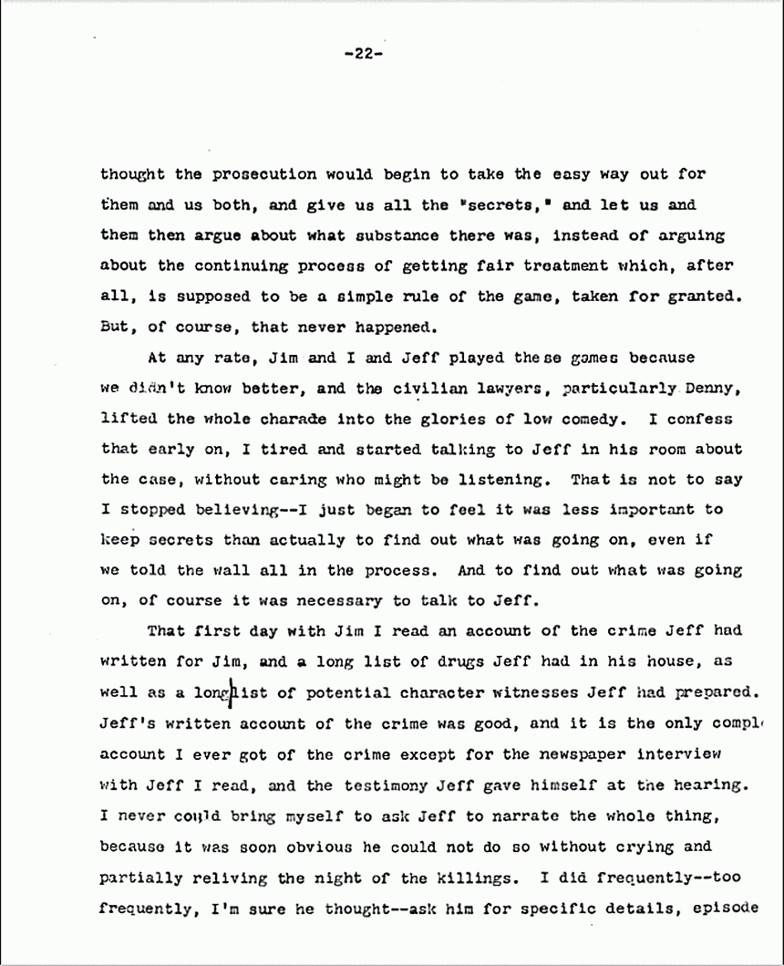 July 6, 1971: Journal of Michael Malley re: his "last uncolicited interference" with the MacDonald case, p. 22 of 102