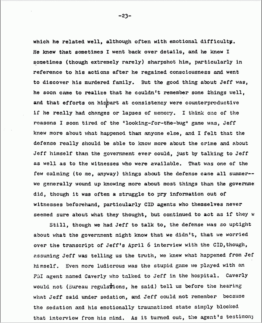 July 6, 1971: Journal of Michael Malley re: his "last uncolicited interference" with the MacDonald case, p. 23 of 102