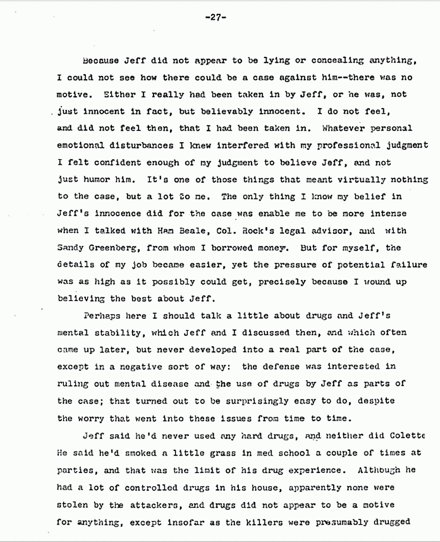 July 6, 1971: Journal of Michael Malley re: his "last uncolicited interference" with the MacDonald case, p. 27 of 102
