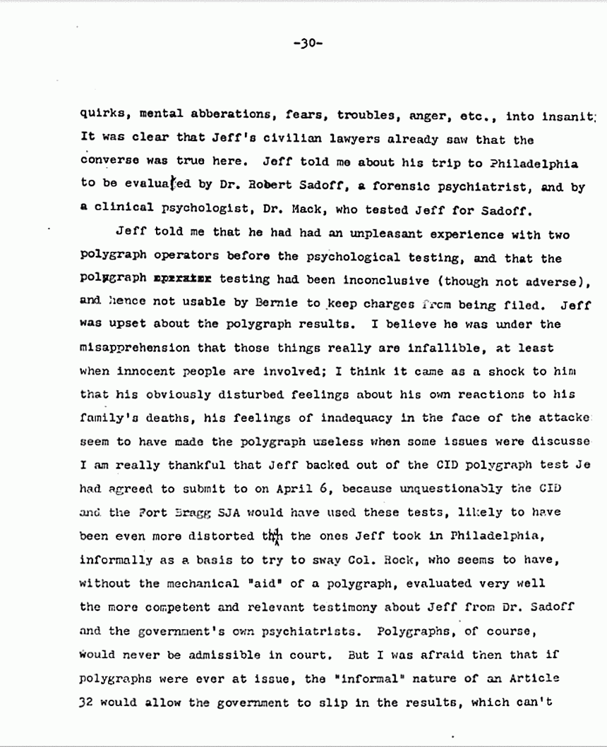 July 6, 1971: Journal of Michael Malley re: his "last uncolicited interference" with the MacDonald case, p. 30 of 102