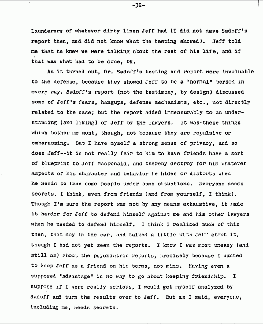 July 6, 1971: Journal of Michael Malley re: his "last uncolicited interference" with the MacDonald case, p. 32 of 102